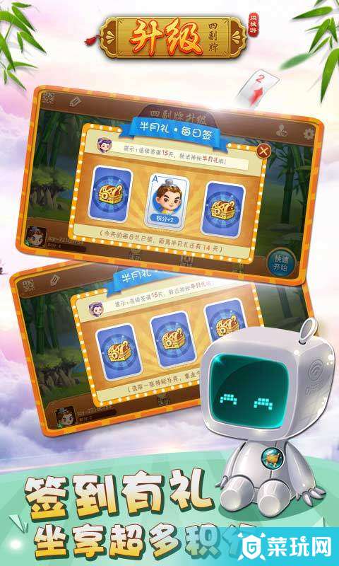 四副牌-升级拖拉机作为一款传统与现代结合的游戏,不仅继承了传统拖拉机升级游戏的精髓,还在游戏玩法和社交互动上进行了创新与突破。其独特的级牌机制、丰富的对牌策略以及实时在线对战功能,使得游戏充满挑战与乐趣。同时,游戏画面精美、公平竞技以及快速的更新迭代也赢得了玩家的广泛好评。无论你是游戏爱好者还是扑克牌迷,这款游戏都值得一试。