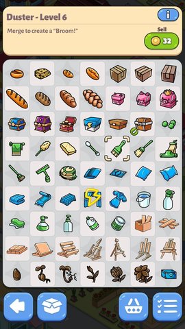 1. 合并元素:玩家通过合并相同的物品来升级它们,比如合并两个小房子得到一个更大更漂亮的房子。