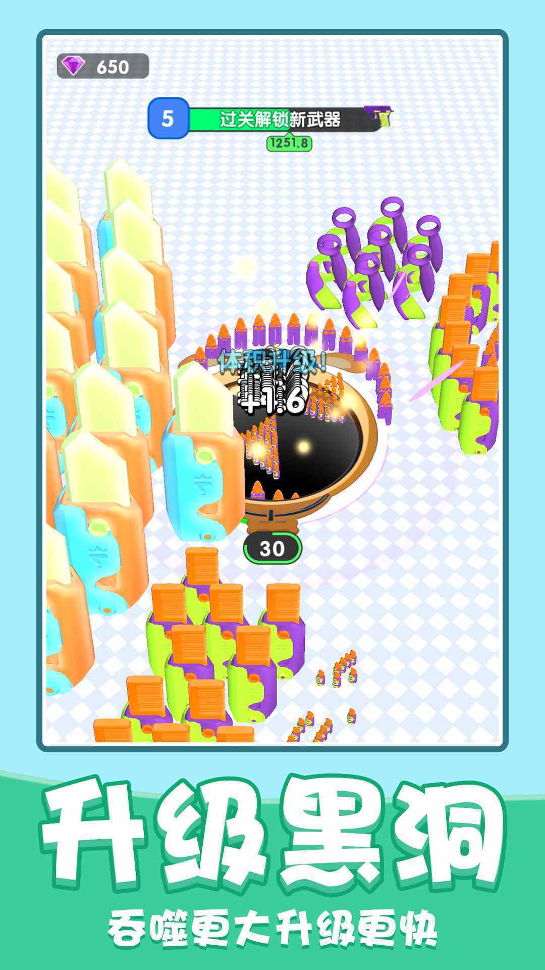 3. 场景中存在各种道具,合理利用道具能帮助黑洞更好地进化。