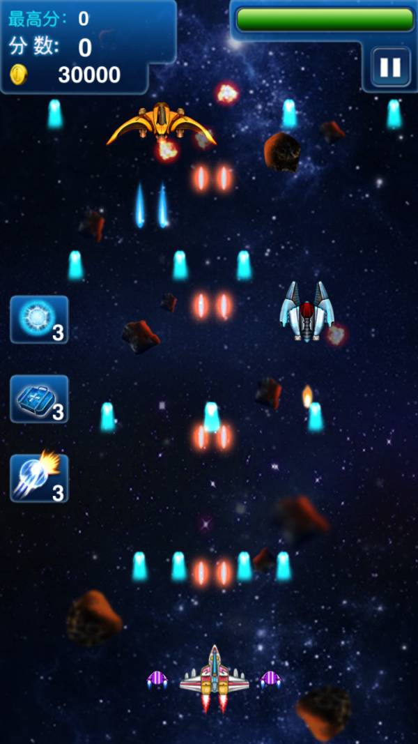 1. 通过左右滑动屏幕操控战机飞行方向。