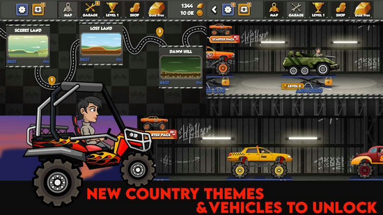 2. 多种款式赛车,从经典越野到酷炫改装车,满足不同玩家喜好。
