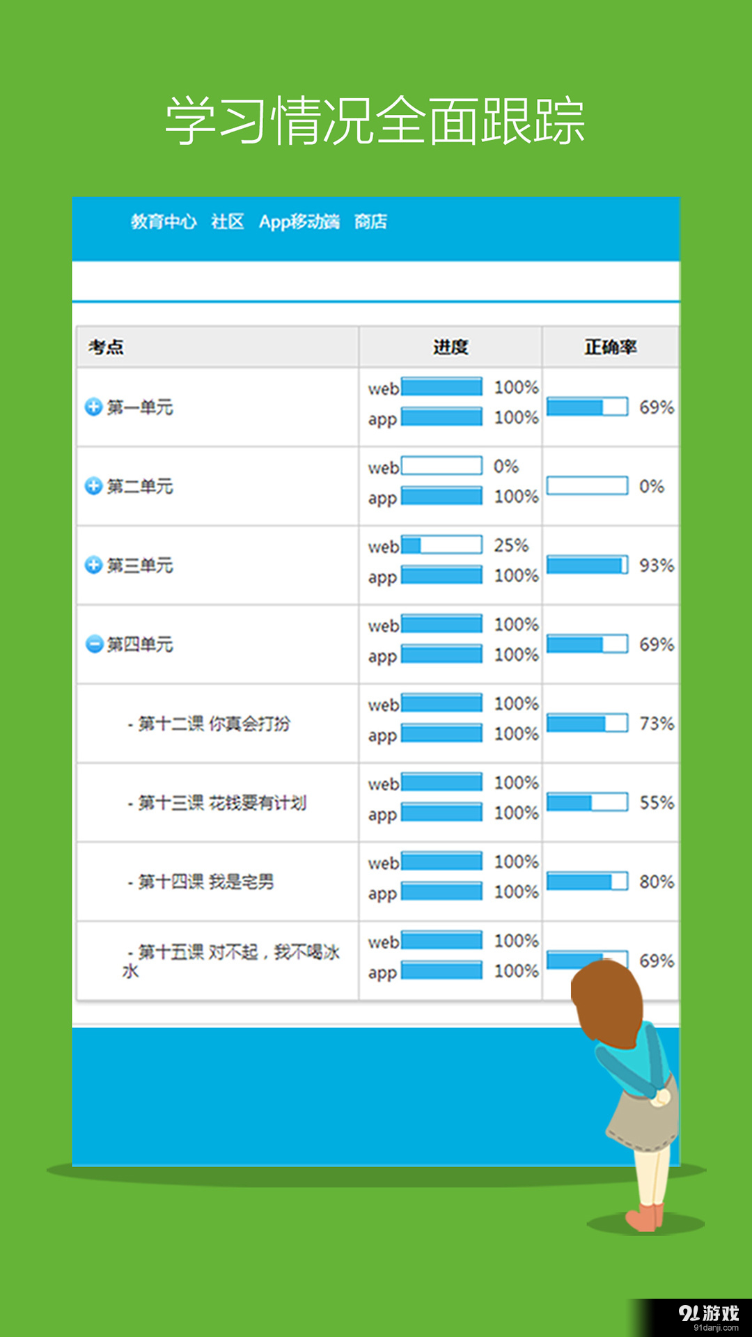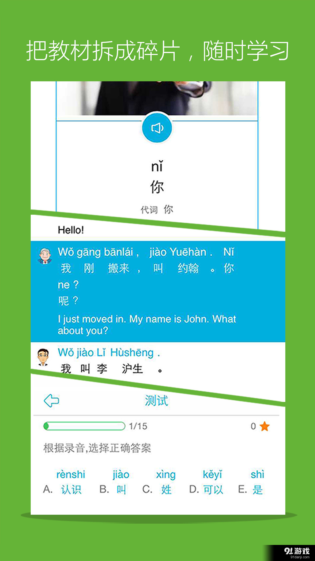 2. 多媒体互动:每课包含单词、知识点、课文、flash视频和练习五个版块,通过视觉、听觉和动手操作的结合,增强学习效果。