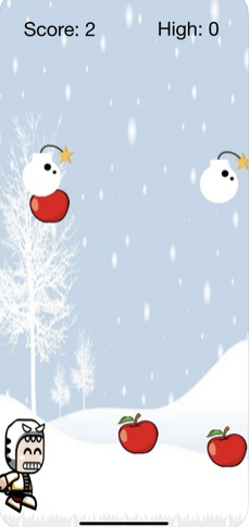1. 玩家控制角色在场景中移动,碰到苹果即可获得分数。