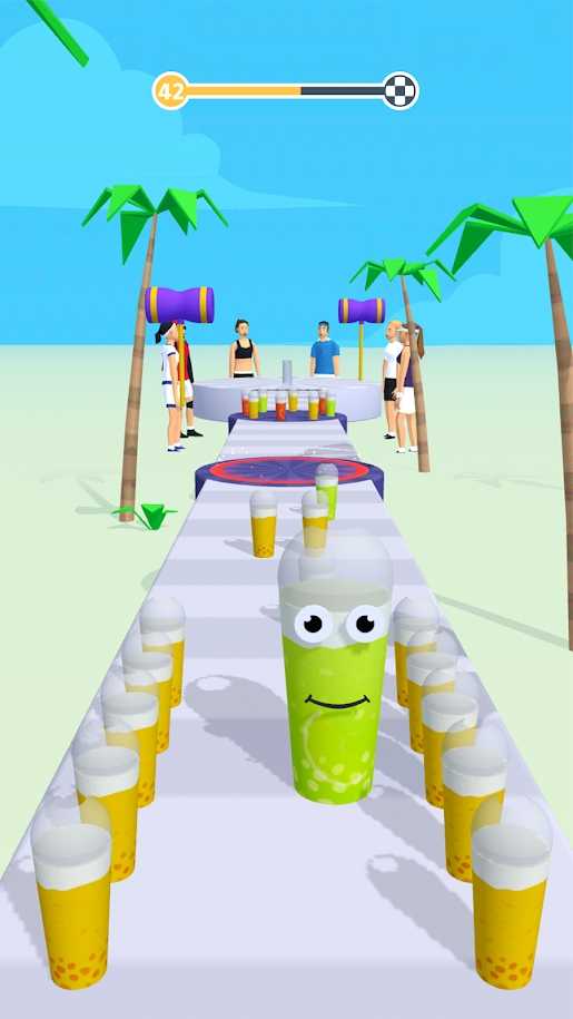 2. 赛道上设有不同类型的果汁道具,收集它们可获得各种特殊效果,比如加速、无敌等。