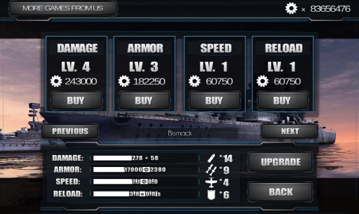 4. 升级系统:可不断提升战舰性能,打造专属强大舰队。