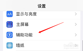 3. 在“设置”菜单中,向下滚动找到并点击“辅助功能”选项。