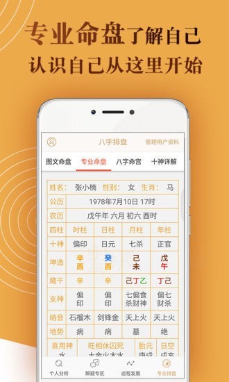 1. 便捷随身:可随时随地在手机上进行八字排盘测算,不受时间地点限制。