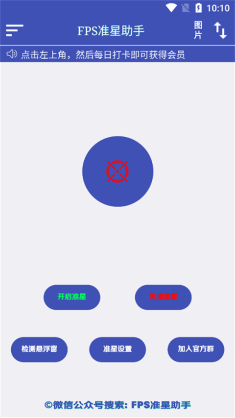 1. 打开软件后,玩家可轻松在游戏中开启准星辅助,快速上手。